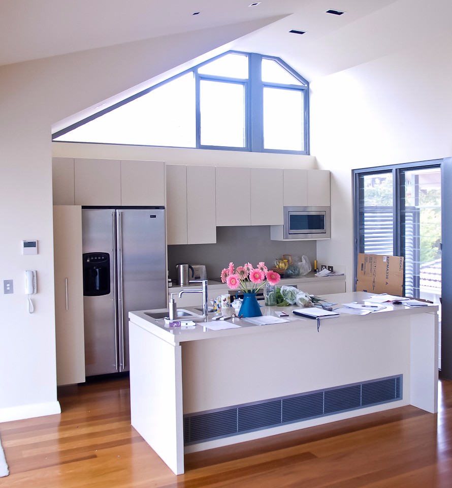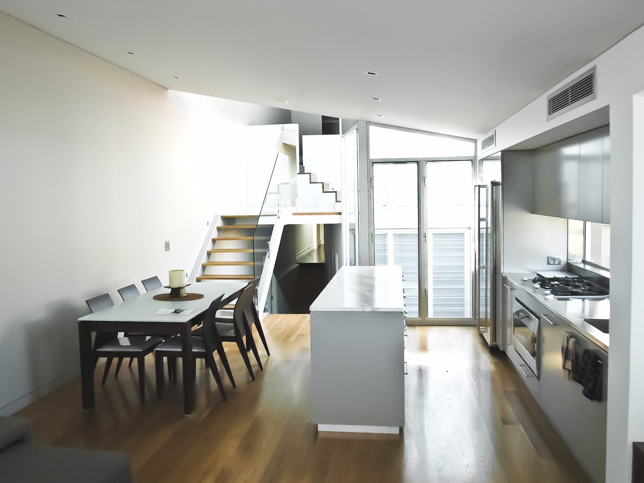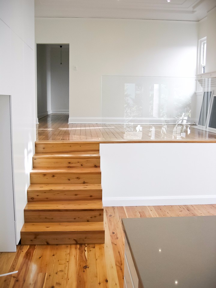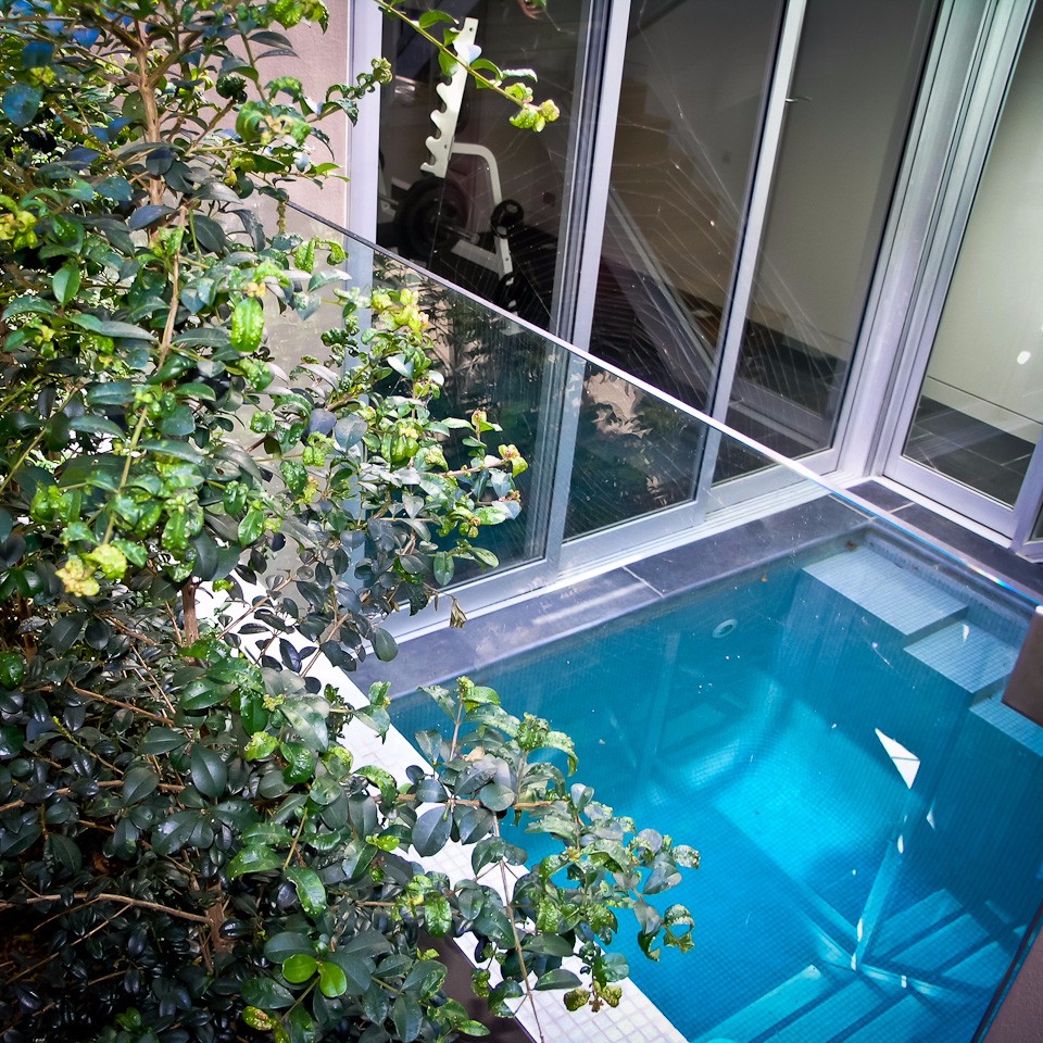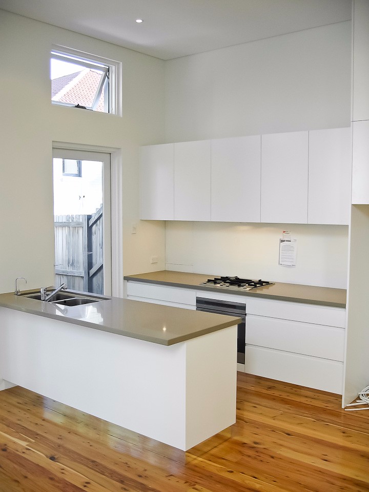 Semi-detached home: A modest and dated federation semi was rebuilt to an innovative design to maximise space and light, creating an ultra contemporary retreat. Clean lines are the hallmark of this unique residence finished in the finest materials available. Shadow line details, anodised aluminium windows and frameless glass are features accentuating this home – as featured in Belle magazine.